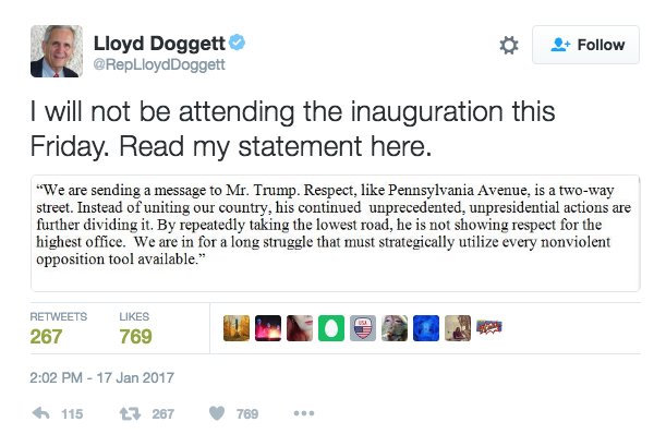 BREAKING: More House Democrats have announced boycotts of Trump's inauguration, bringing the total to at least 47: http://fus.in/2ixAx3a pic.twitter.com/NwlmQhUlNR