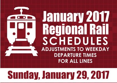 Online schedules avaliable for the Regional Rail change starting Sunday, January 29, 2017