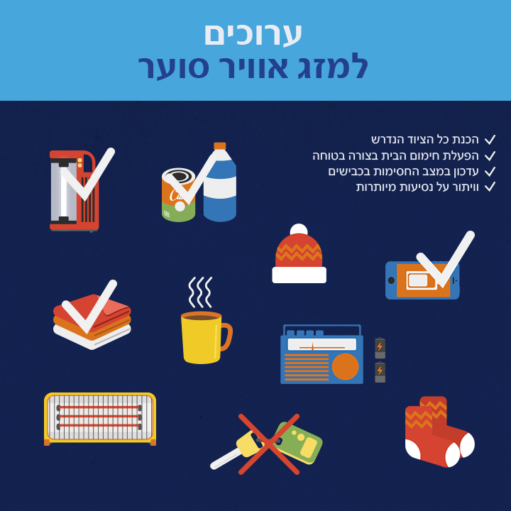 36. למזג אויר סוער – חשוב להיערך! לכן, אנו מרעננים את ציוד החירום שצריך להיות לכל אחד בביתו: