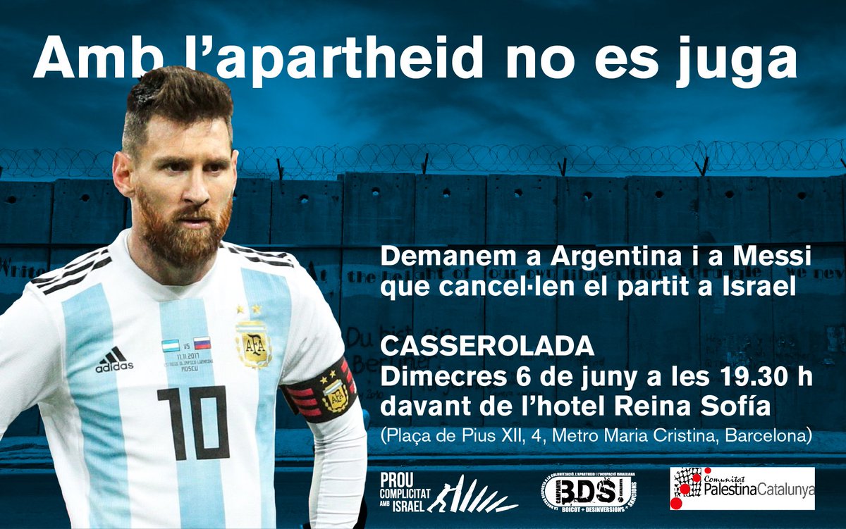 @TeamMessi y a su selección que no limpien la cara del#apartheid participando en el amistoso, que ha costado 3 millones de dólares a Israel.#ArgentinaNoVayas http://proucomplicitat.cat/messi-argentina-bds …pic.twitter.com/nffQWsYRZJ