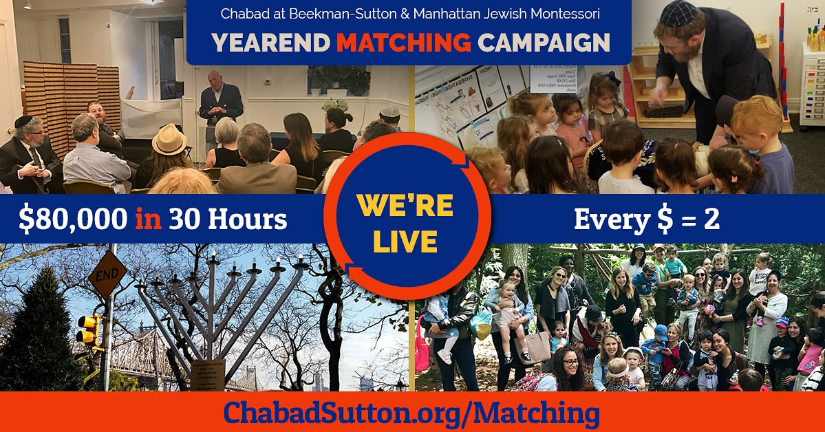 First pitch just 4 hours away for the Chabad at Beekman-Sutton year-end campaign at . Special thank you to campaign ambassador who will be in-house today to help raise $80,000 in 30 hours. Make your donation online or come by.
