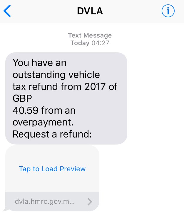 Hey Twitter! I just received this text from the DVLA allegedly. Is it a scam?pic.twitter.com/dNOUEkce8u