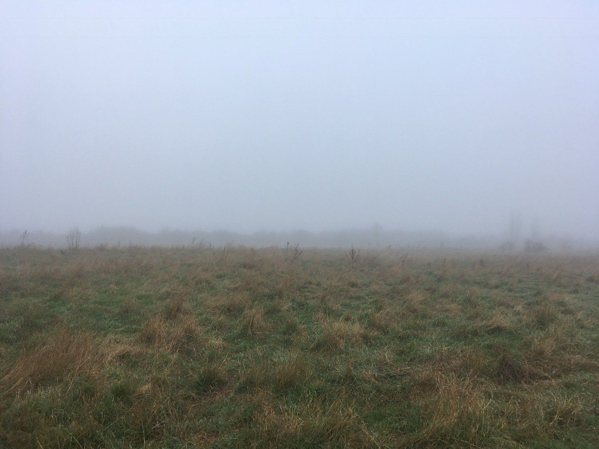 Listening to the distant sound of a fog horn out at sea whilst walking across the misty Essex marshes