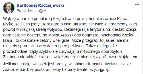 Wątpię w bardzo popularną tezę o trwale prozachodnim zwrocie Kijowa. Myślę, że Putin gra o całą Ukrainę, nie tylko jej fragmenty - i ma spore szanse.pic.twitter.com/UBuckfWO8F