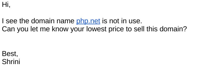 3 queries about buying the http://php.net domain this week. This last one was the most ridiculous.pic.twitter.com/HwQpKjwnAK