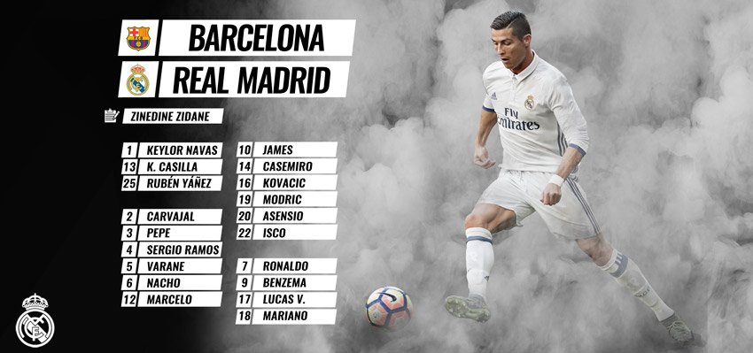 #RMClasico Zidane a convoqué 19 joueurs pour El Clásico.#HalaMadridpic.twitter.com/vT2p1AmIcW