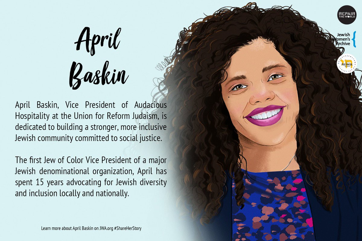 April Baskin, Vice President of Audacious Hospitality at the , is dedicated to building a stronger, more inclusive Jewish community committed to social justice. Learn more about and with others here: