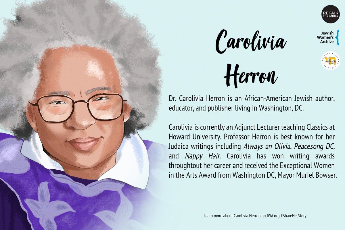 Dr. Carolivia Herron is an African American Jewish author, educator, and publisher living in Washington, D.C. is currently an Adjunct Lecturer teaching Classics at Howard University. Learn more about Carolina and with others: .