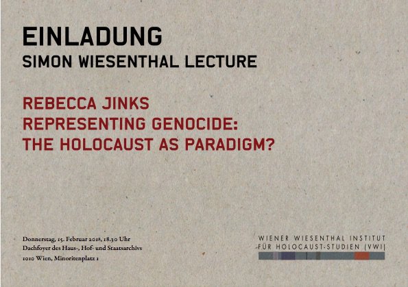 Tonight, Dr Becky Jinks will be delivering a Simon Wiesenthal Lecture at the Simon Wiesenthal Institute for Holocaust Studies, Vienna, Austria: http://www.vwi.ac.at/index.php/en/veranstaltungen/icalrepeat.detail/2018/02/15/214/-/rebecca-jinks-representing-genocide-the-holocaust-as-paradigm …pic.twitter.com/h113bTIDf4