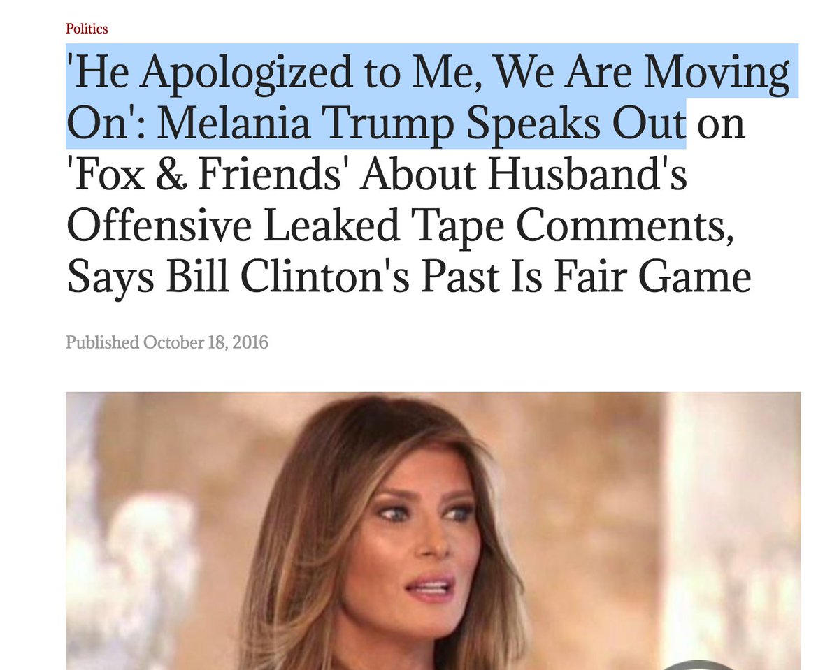 "I didn't even apologize to me wife" not a great line when just caught on tape bragging about grabbing pussy when said wife was pregnant.