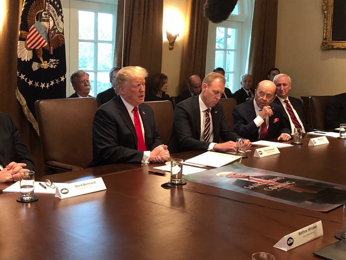 پرزیدنت ترامپ همراه با پوستر تحریمها ( ۵ نوامبر- روز ری استارتیها) بعد از جلسه با کابینه به خبرنگاران گفت: ایران به دلیل سیاستهای من به کل عوض شده است و منتظر اتفاقات جدید باید باشند