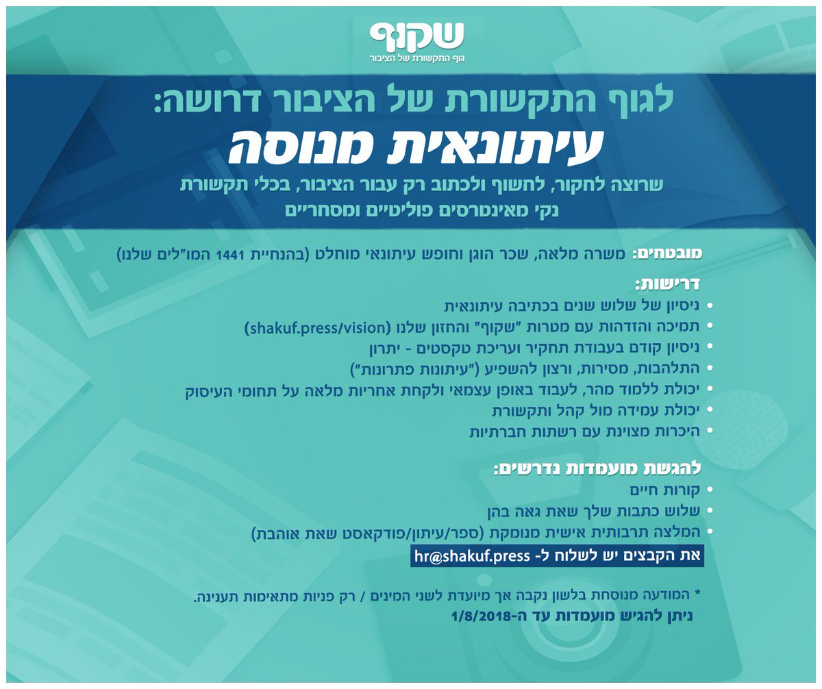 מכירים מישהו/י? אגב - אם אתם שונאים את פעילותי זו סיבה כפולה לסייע בהפצה. כך יבואו לעבוד אצלנו אנשים מהמעגלים שלכם שאתם מעריכים