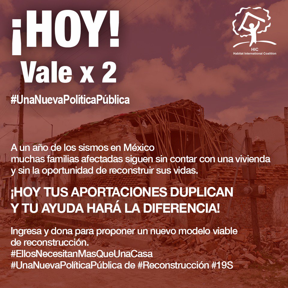 @hicpresident@Hic-Al nos invita a unirnos en esta iniciativa que tiene el fin de seguir aportando en los procesos de reconstrucción después de los sismos de 2017 https://bit.ly/2Q5nFhH pic.twitter.com/XK2o8dlskW