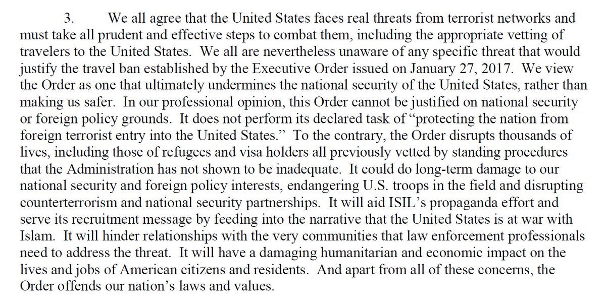 Bipartisan NatSec officials to court: “In our professional opinion, the Order was ill-conceived, poorly implemented and ill-explained.”pic.twitter.com/l02Ncs4vPe