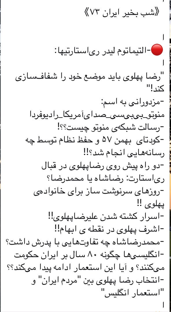 شب بخير ايران - قسمت ٧٣ - التيماتوم- رضا پهلوي-اسرار شبكه من و تو - رضا شاه - محمد رضا شاه -امپراطوري تصوف- اشرف...