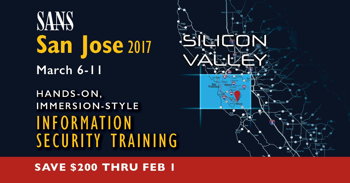 #cybersecurity#training at#SANSSanJose. Register now: http://www.sans.org/u/l8Q pic.twitter.com/B0HbqqExVS
