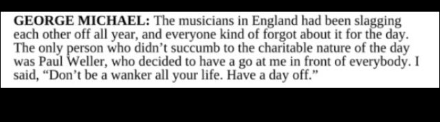 9. There'll be lots of talk about George Michael's "demons" and "troubled life" today. So here's a reminder that he was hilarious. On Band Aid: