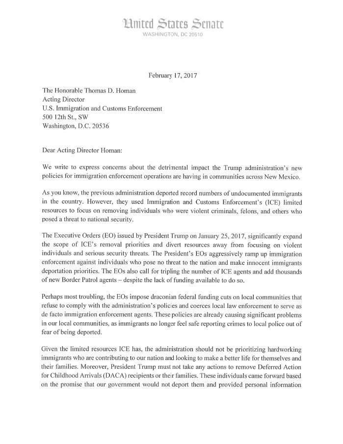 @MartinHeinrich & I are demanding answers from immigration officials. Our constituents are extremely concerned about raids and roundups.pic.twitter.com/pd0hbhC2Uz