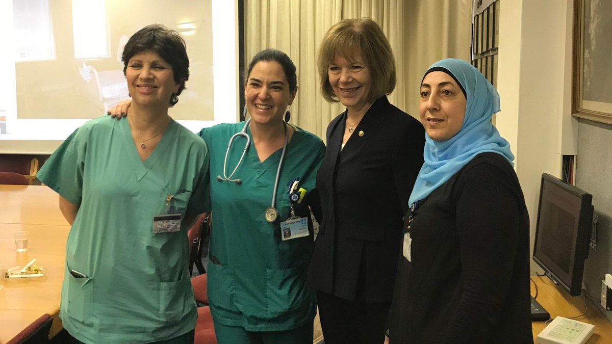 This is Julie and two of her fellow nurses who work at Hadassah Hospital in Jerusalem. This hospital, which is a partnership with Americans, heals people from throughout Israel and the West Bank.pic.twitter.com/Fg8xoYGoOg