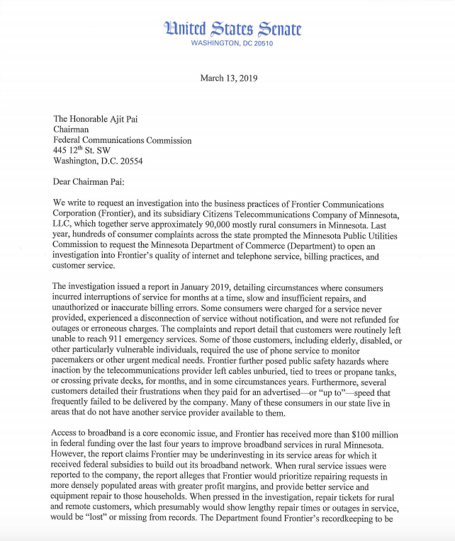 @FCC to investigate Frontier’s business practices in Minnesota.pic.twitter.com/wSqR5Siu2X