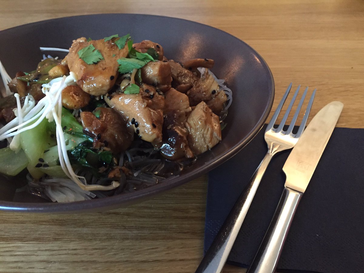 Reisnudeln mit gebratenem Huhn, Pak-Choi und Pilzen. Schlapperlatz bitte selbst mitbringen ;)pic.twitter.com/G0rTs1LT16