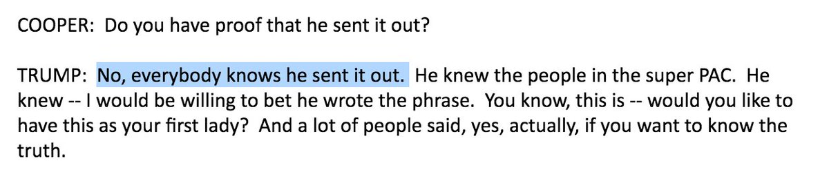 Cooper asks Trump if he has proof that Cruz sent out the Melania GQ shoot. "No, everybody knows he sent it out." pic.twitter.com/cvV9sgr50b