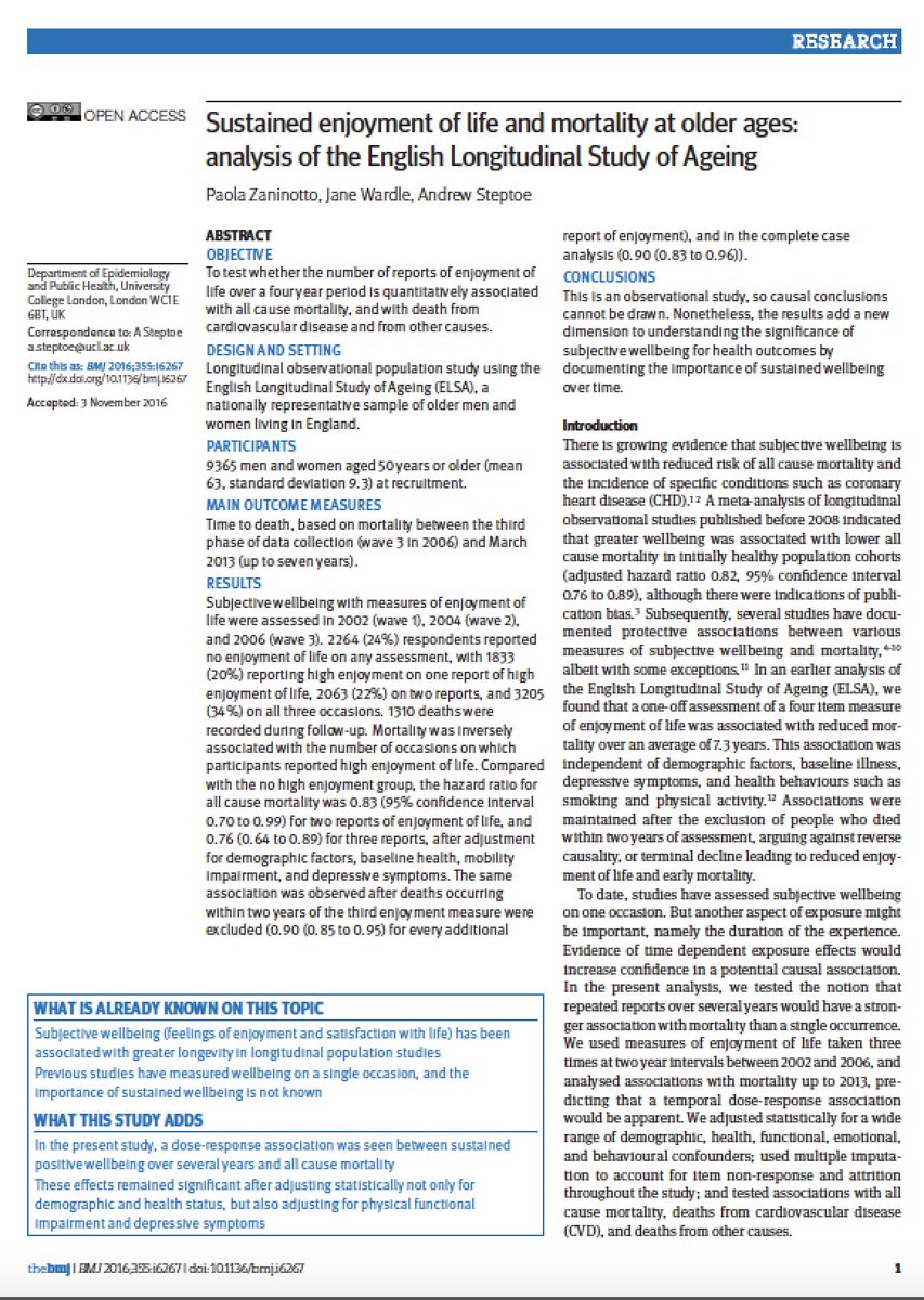 Staying happy for longer can help you live longer (more evidence in my book Roadtesting Happiness http://www.sophiescott.com.au :)https://twitter.com/EricTopol/status/808830184497422336 …
