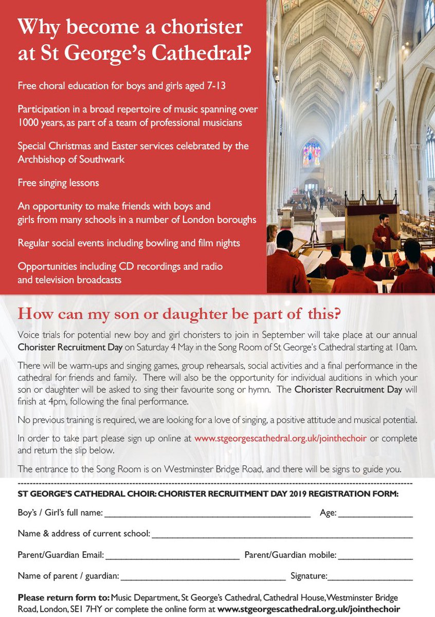 @StGeorgesCath. Join us in just 2 days, Saturday 4 May, at 10am at our annual recruitment day. Registrations are streaming in fast for this exciting day. Register your son or daughter now: http://www.stgeorgescathedral.org.uk/jointhechoir or just come along on the day!#jointhechoirpic.twitter.com/t3IHP7lMRK