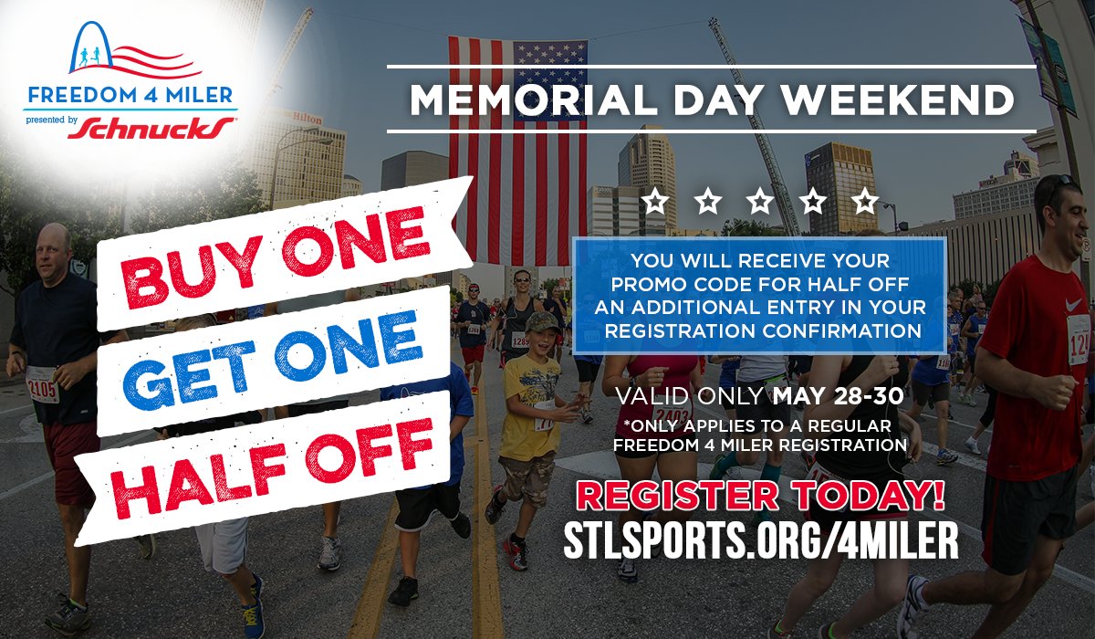 @SchnuckMarkets#Freedom4Miler and get 1 additional race entry half off!#MemorialDayWeekendpic.twitter.com/tog28GQUDgBig River Running Co, STL Ballpark Village, VP Parade ಮತ್ತು3 ಇತರರು-