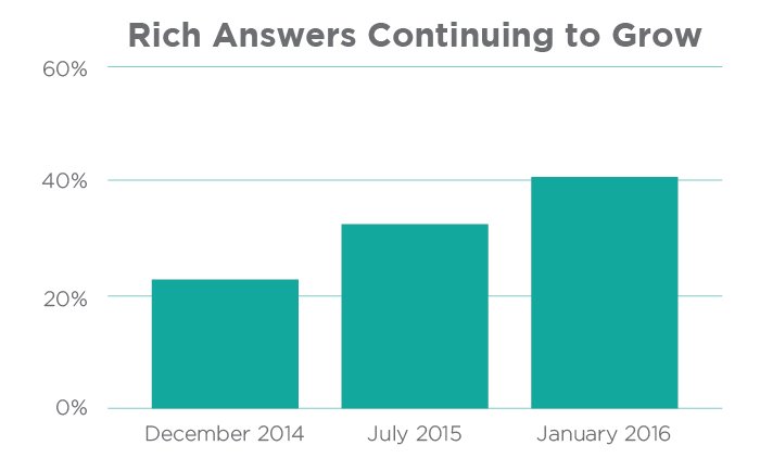 Google's Rich Answers (aka Direct Answers) have almost doubled in SERPs since 2015. More at http://stonet.co/featured-snippets-tw …pic.twitter.com/caggdqeK1M