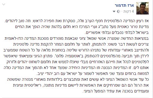 רעיון המדינה הפלס חטף וולה סנוקרת ואת חפירה לראש. וטוב שכך. אם השמאל באמת ציוני ומוטרד ממדינה דו לאומית עליו להתייצב כעת מאחורי עמדות נתניהו
