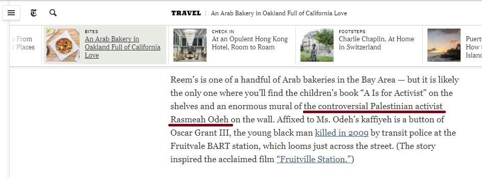 But that's the same which called Rasmeh Odeh, convicted for deadly bombing, a "controversial Palestinian activist"