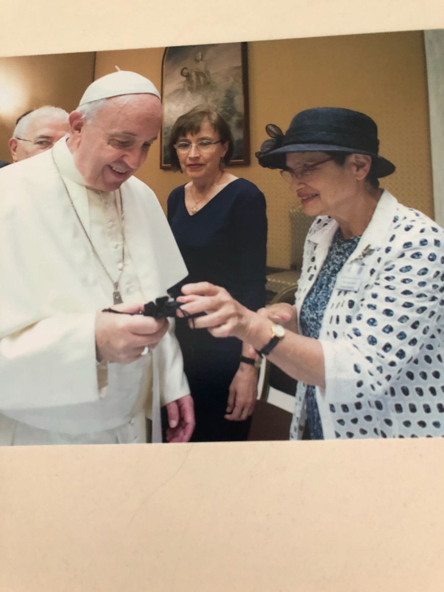 אמא שלי, פרופ' איוון פרידמן, יו"ר רשות העתיקות היוצאת, נותנת לאפיפיור בולה עם כיתוב בעברית מתקופת הבית הראשון שנמצאה בחפירות עיר דוד.pic.twitter.com/ORpwu75vUN