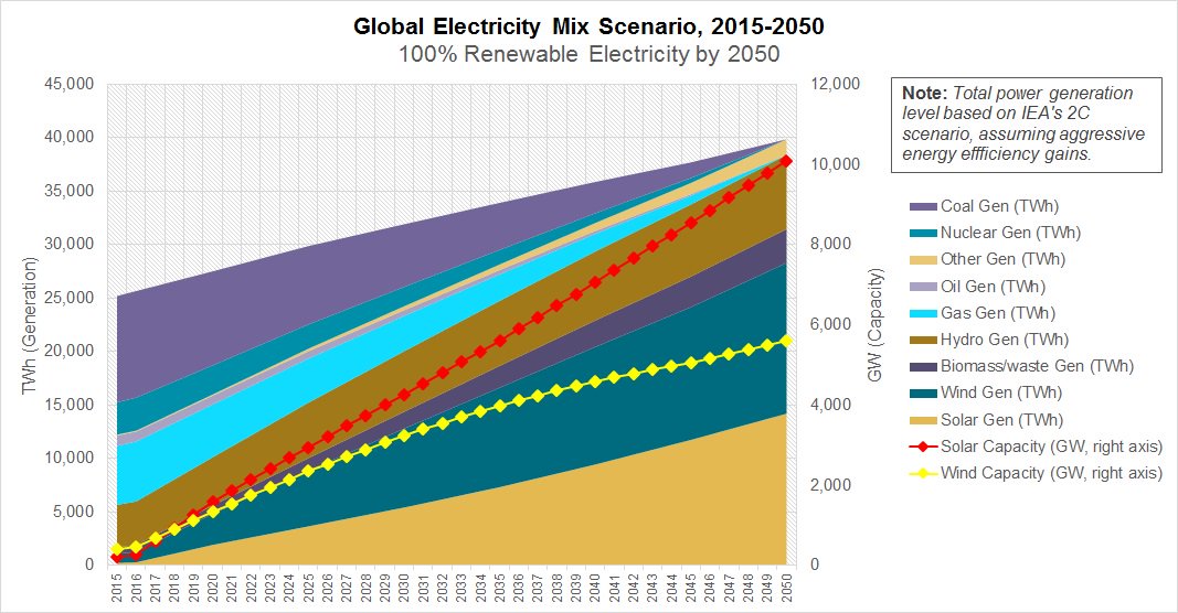 29. I was curious what 100% RE by 2050 looks like, so ran rough #'s. Requires ~400-500 GW solar+wind installs every year