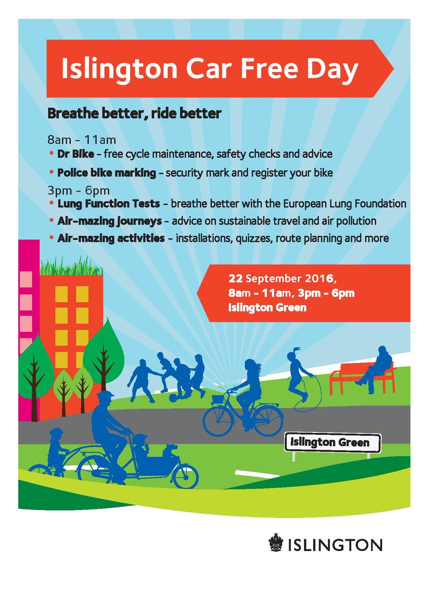 #CarFreeDay! Free#bicycle maintenance & sustainable travel advice at#Islington Green, 8am-11am & 3pm-6pm.pic.twitter.com/bScboSJfzr