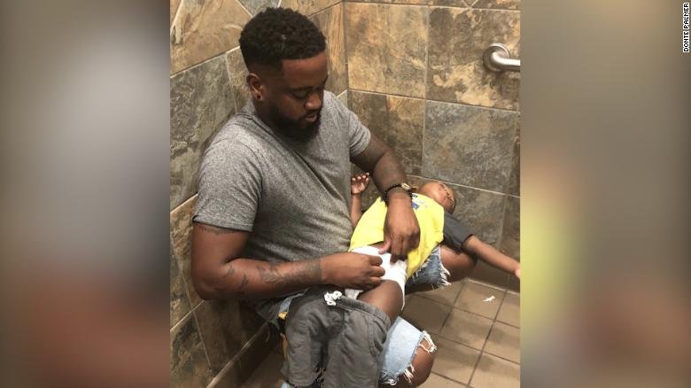 Donte Palmer isn't the only dad who's had to squat on a dirty restroom floor to change his baby's diaper. He's just the newest face of a movement that's been going on for quite a while: to install baby-changing stations in men's bathrooms. https://cnn.it/2NYNdjb pic.twitter.com/ytFeMoIFBb