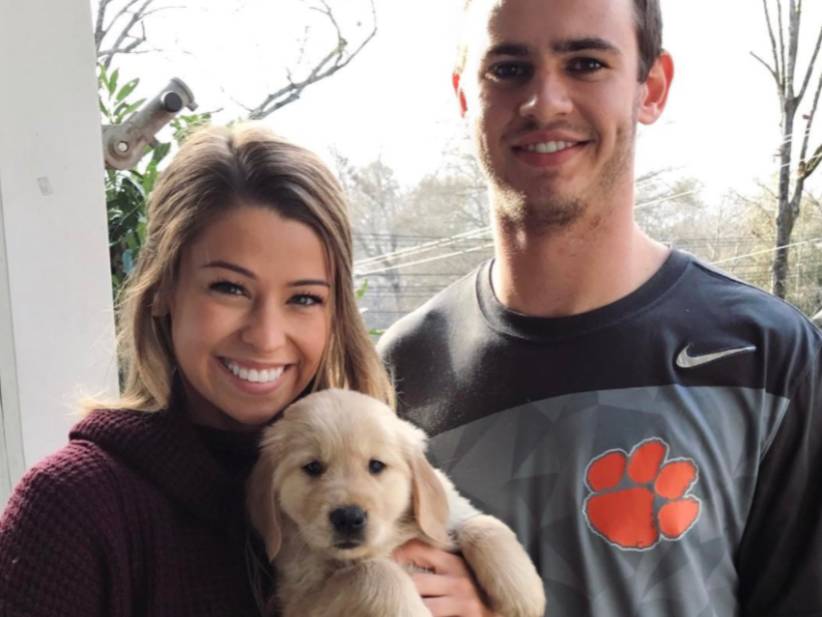 Clemson's Hunter Renfrow had the best National Championship celebration with his cute puppy and hot girlfriend http://trib.al/7WzPmom pic.twitter.com/dLnAiNLOxC