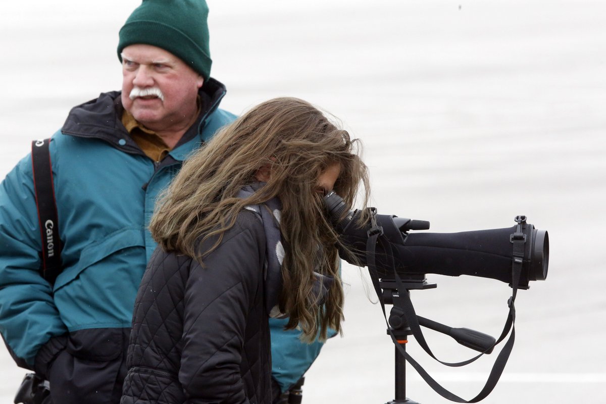 @AmyEVoigt: Holly Rice, 11, of Oregon looks at a snowy owl perched at Maumee Bay State Park. Avid birder Tim Haney stands nearby.pic.twitter.com/835KlFiAmL