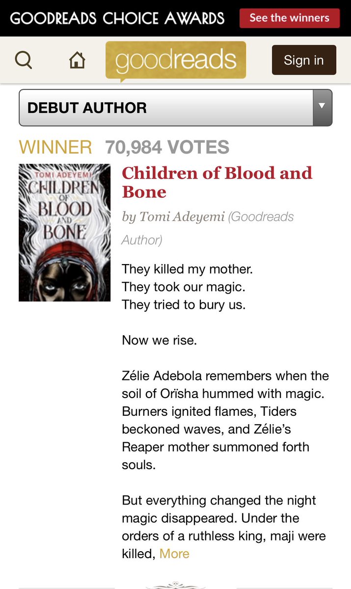 @tomi_adeyemi and Children of Blood and Bone! https://www.goodreads.com/choiceawards/best-debut-author-2018 …pic.twitter.com/3l8QcMqQ19ಧನ್ಯವಾದಗಳು. Twitter ಇದನ್ನು ನಿಮ್ಮ ಕಾಲರೇಖೆಯನ್ನು ಉತ್ತಮಗೊಳಿಸಲು ಬಳಸುತ್ತದೆ. ರದ್ದುಗೊಳಿಸುರದ್ದುಗೊಳಿಸು -