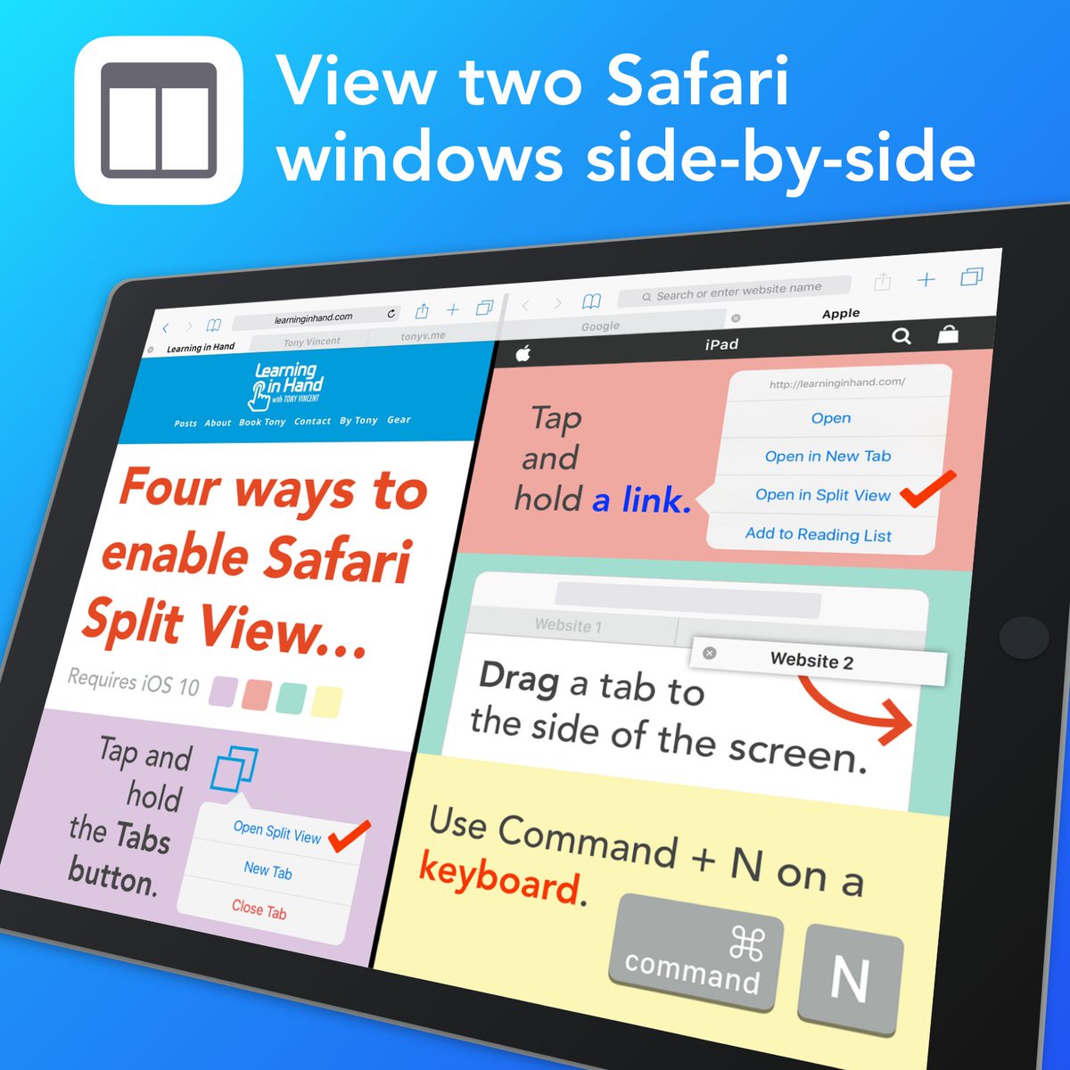 You can view two Safari windows side-by-side in iOS 10 on an iPad! #ipadedpic.twitter.com/mobXAkLXQF