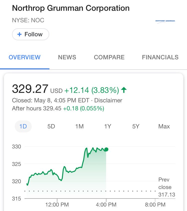 Stocks of top US weapons manufacturers shot up just as Trump announced he’s pulling out of the Iran deal. War is a racket.pic.twitter.com/jkLXmOJdXe