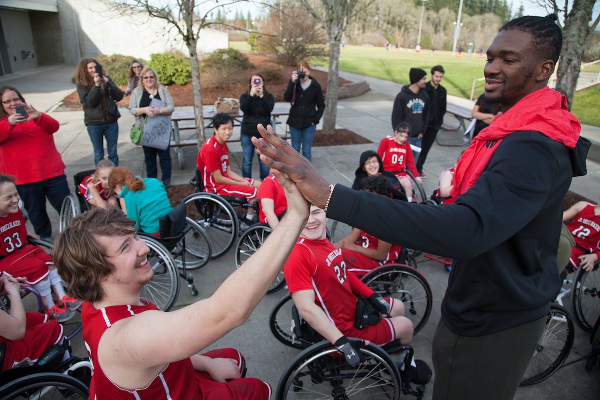 Noah and Pat recently surprised the Junior Wheel Blazers at the Bridge City Wheelchair Basketball Tournament