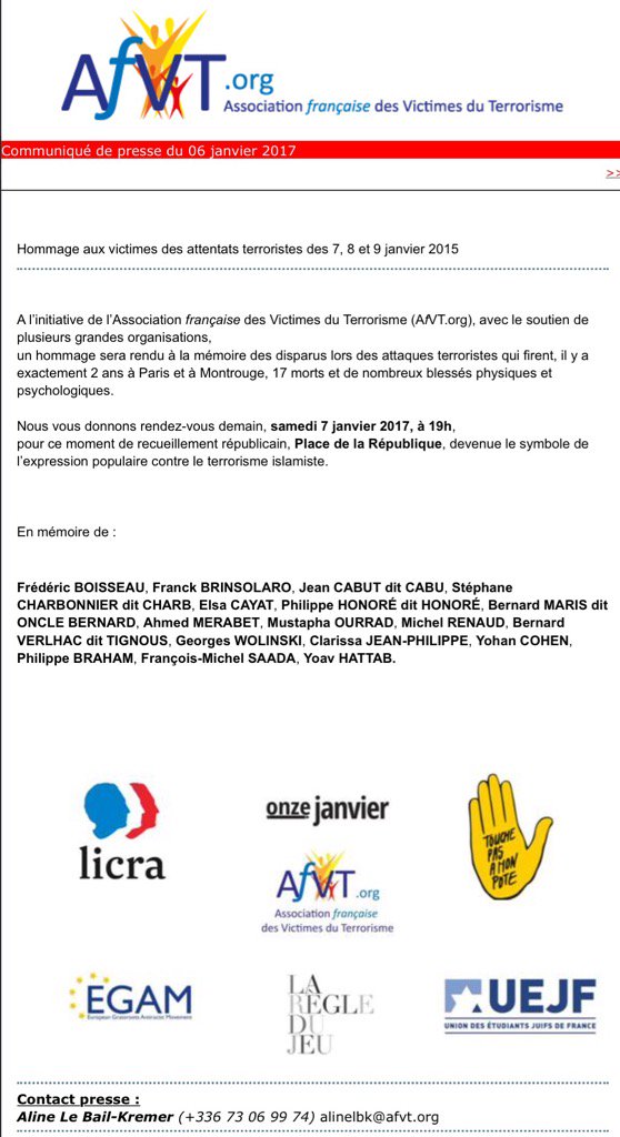 1. A l'initiative du Crif et en partenariat avec d'autres associations, l'UEJF appelle à se rassembler dimanche 15...