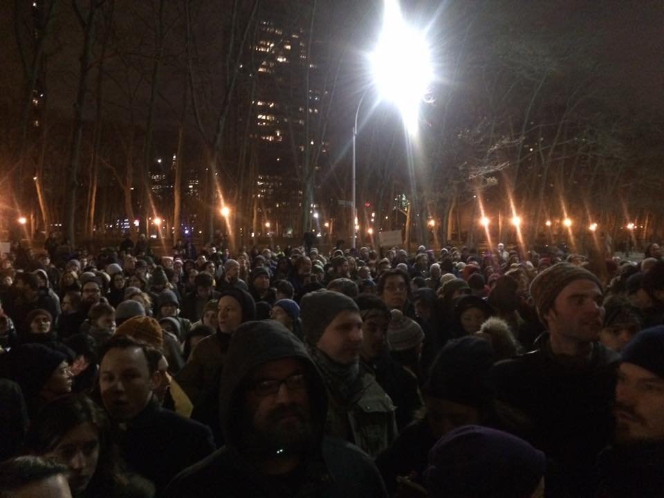 Protesters gathering at the federal courthouse in downtown Brooklyn