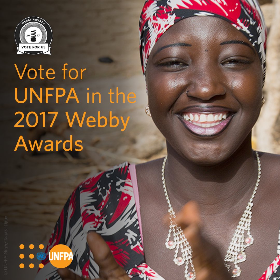 @TheWebbyAwards, the Internet’s highest honor. Vote for@UNFPA: http://bit.ly/UNFPA_Webbys#Webbyspic.twitter.com/SQTqKBER86 -