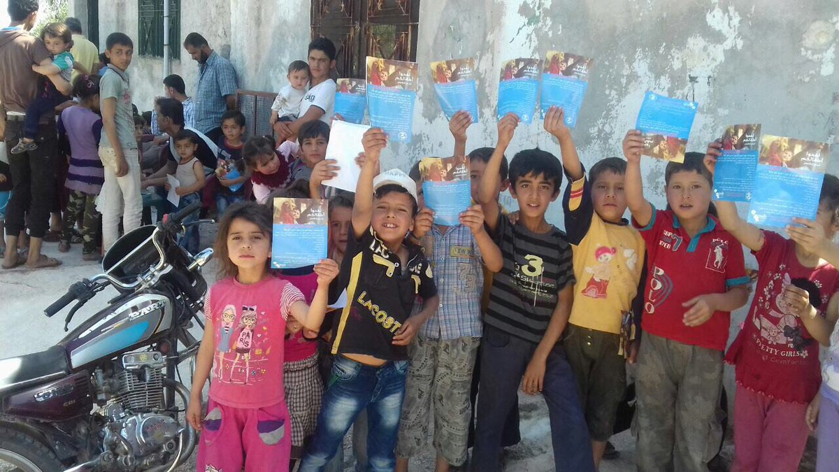 5. Children holding immunisation awareness leaflets as part of a immunisation campaign in