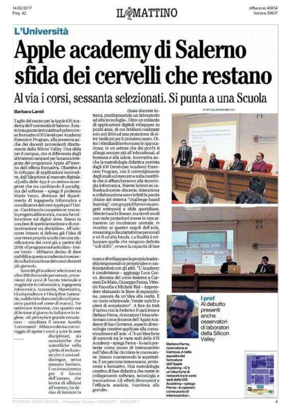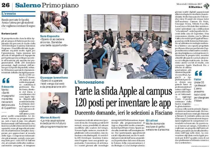 Al via la . Al campus di Fisciano la prima lezione dell' iOS Academy Extension Program per Unisa.