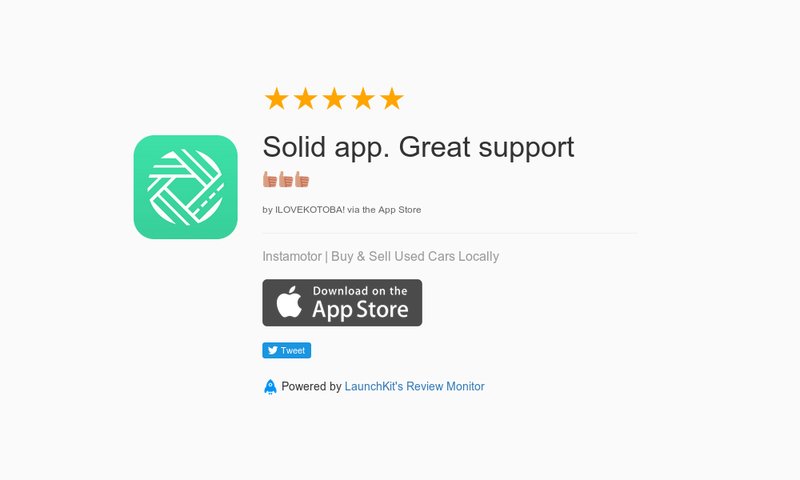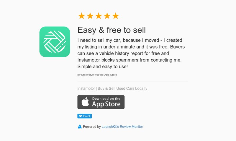 5 Star Review: "5 stars: Makes selling a vehicle that much easier" https://launchkit.io/reviews/X_N1cOHgakc/ … pic.twitter.com/mWtyt4QHMV