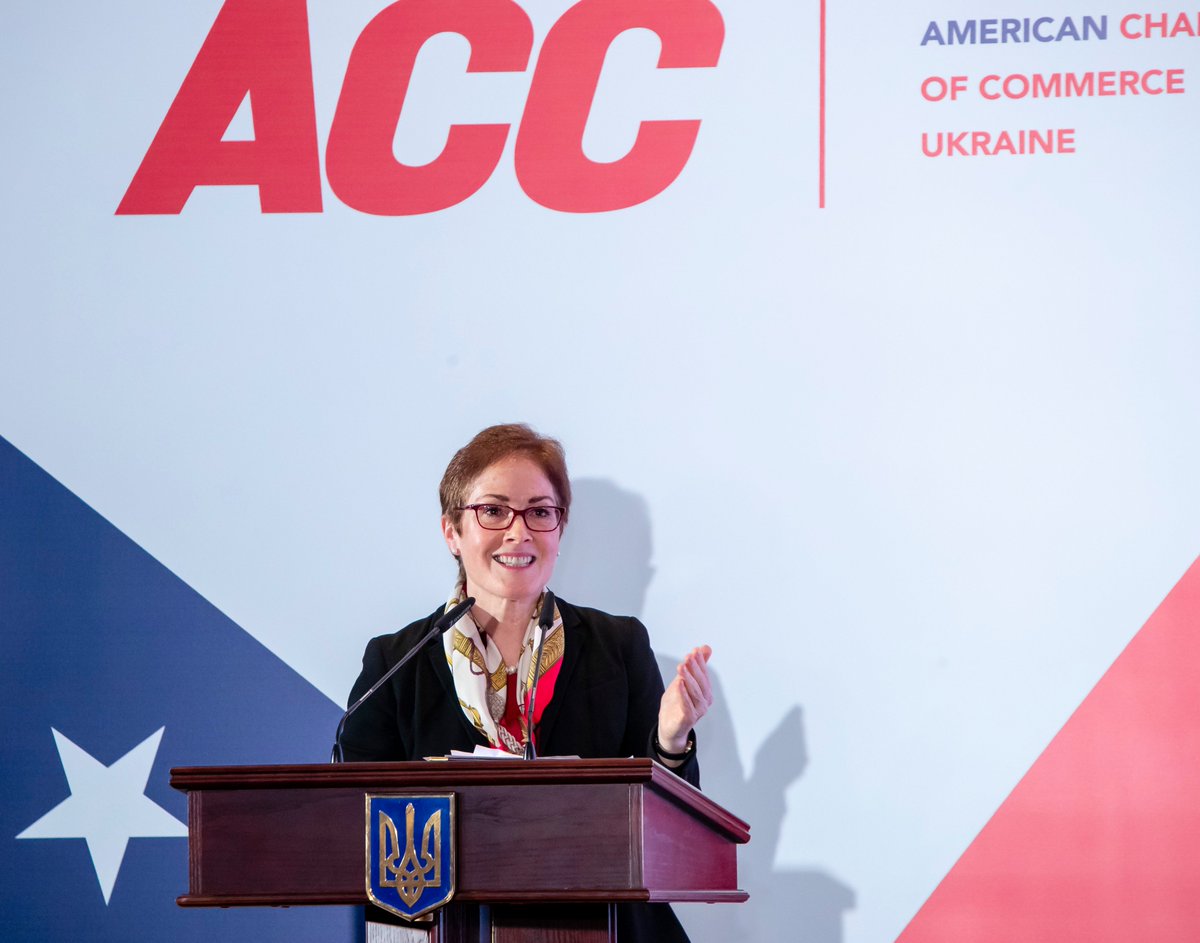 (1/2) Посол США Марі Йованович поспілкувалась з членами Американської торговельної палати про їхню важливу роль у прагненні справедливості, прозорості та верховенства права в Україні. Читайте її виступ тут:
