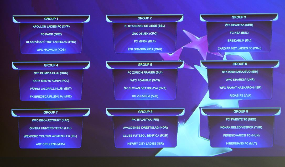#UWCL qualifying round draw -23-28 August -9 group winners into last 32 http://uefa.to/28RfeQx pic.twitter.com/7spa4rej5e